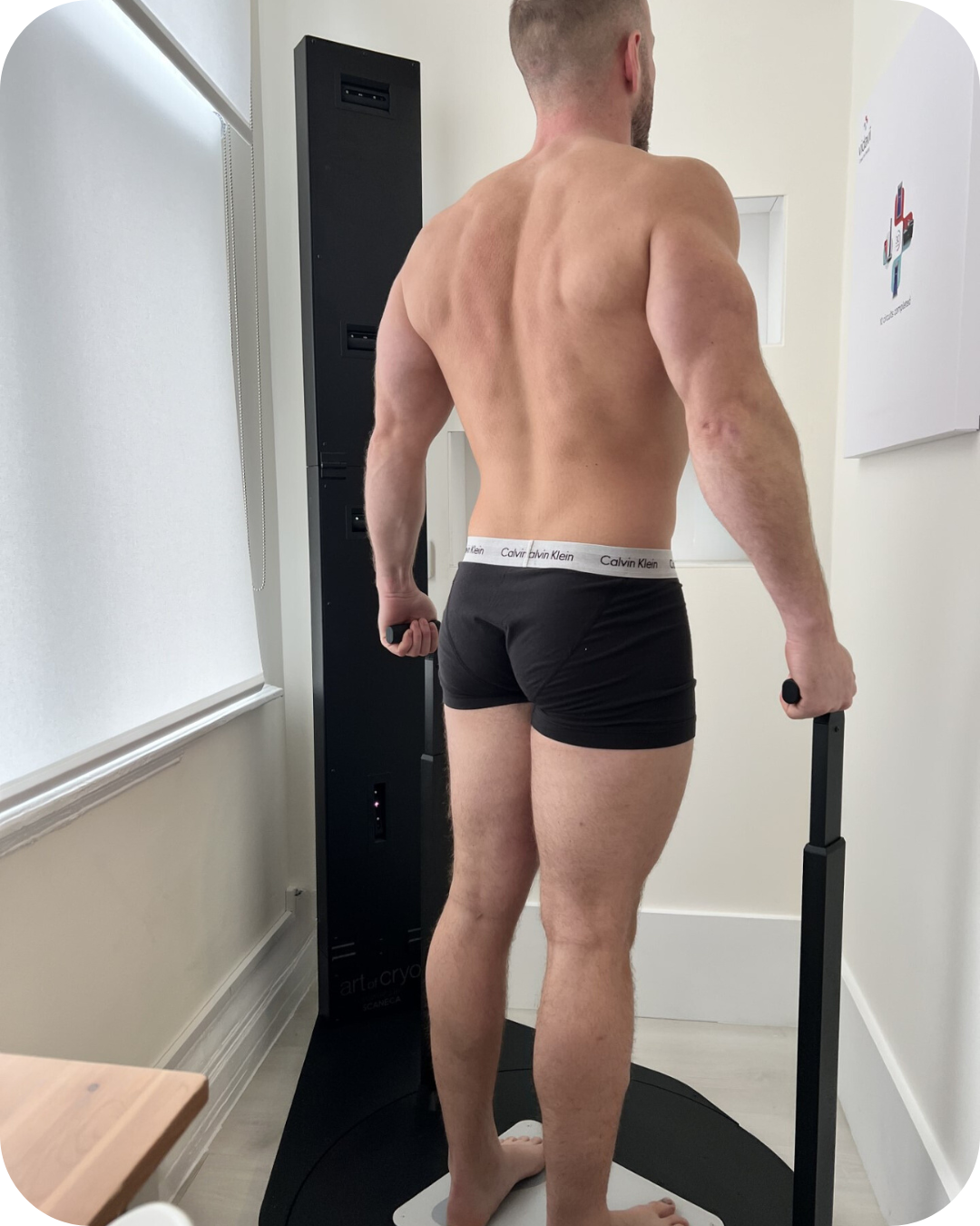 The scan takes a few minutes at most. You step onto the 3D scanner, the machine does its thing and voilà, you can now track your progress through our app (more on that below).